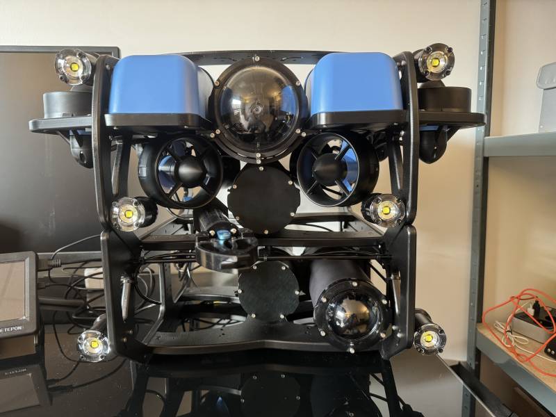 Sur la base d'un BlueROV 2 en configuration heavy (8 propulseurs) et caisson en aluminium lui permettant de plonger ? une profondeur de 300m. Il est aussi doté d'un skid permettant l'ajout de composants supplémentaires.